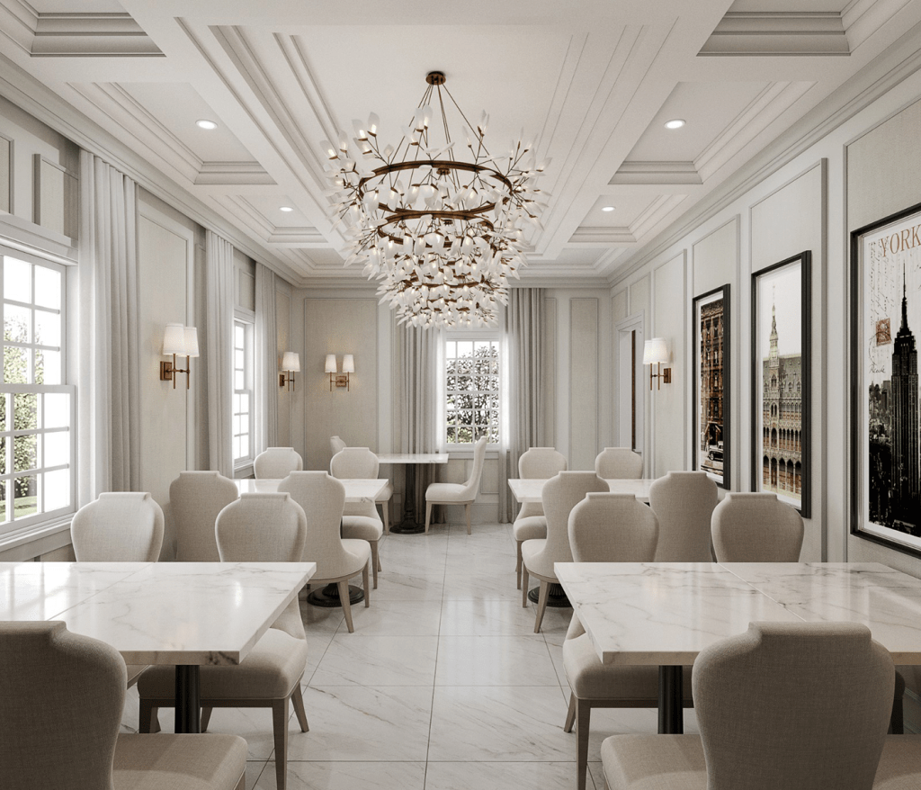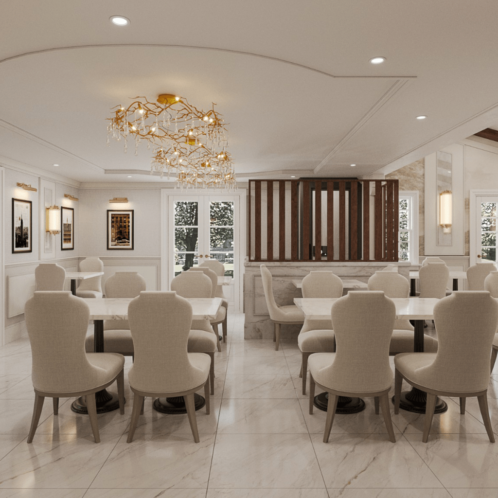Whether you’re seated beneath the warm glow of crystal lighting, surrounded by stately wall panelling and curated artwork, or enjoying the airy ambiance of our garden-view salon, every space has been crafted to make your dining experience feel both graceful and welcoming.
